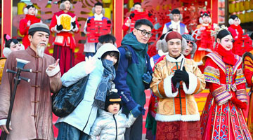 虞金顺在艺术馆介绍自己创作的乐清黄杨木雕作品《中国梦》(11月25日摄)。