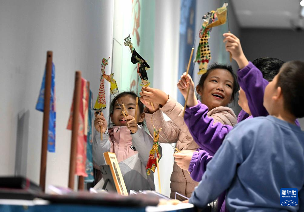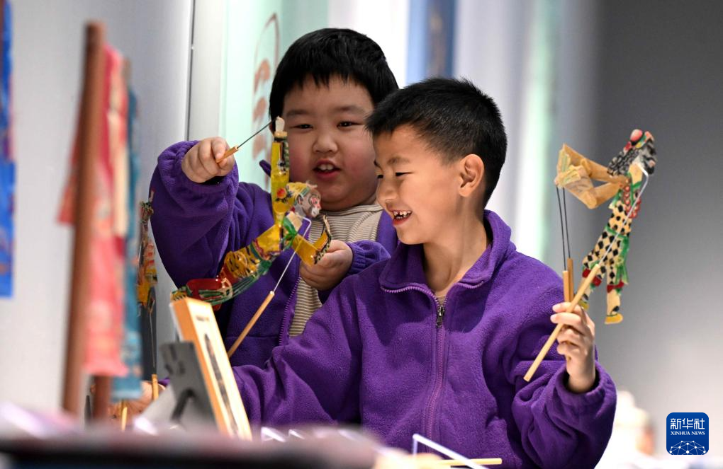 12月8日,小朋友在河北省群艺馆非遗展览体验区体验。