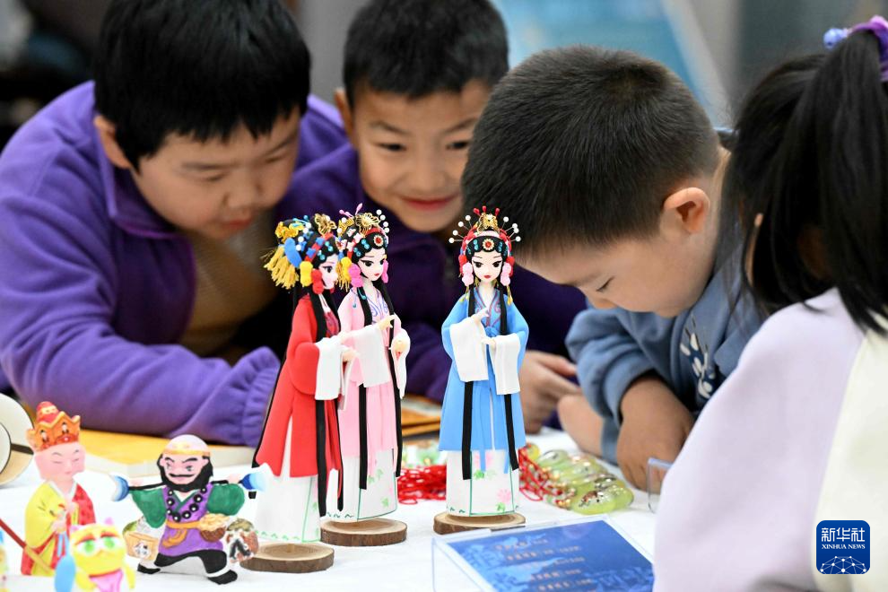 12月8日,小朋友在河北省群艺馆参观非遗展览。