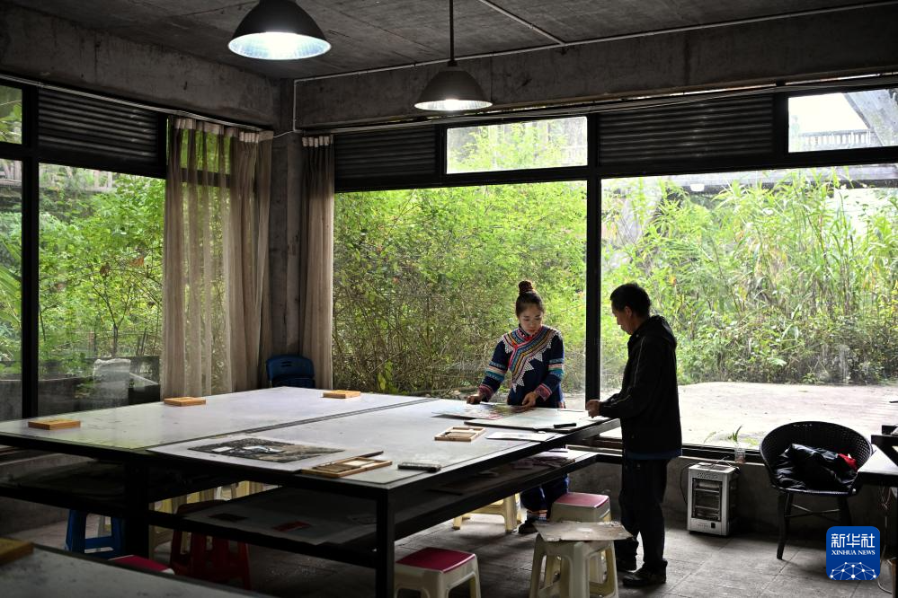12月9日,在云南普洱学院那柯里绝版木刻教学实践基地,绝版木刻画师在进行版画创作。