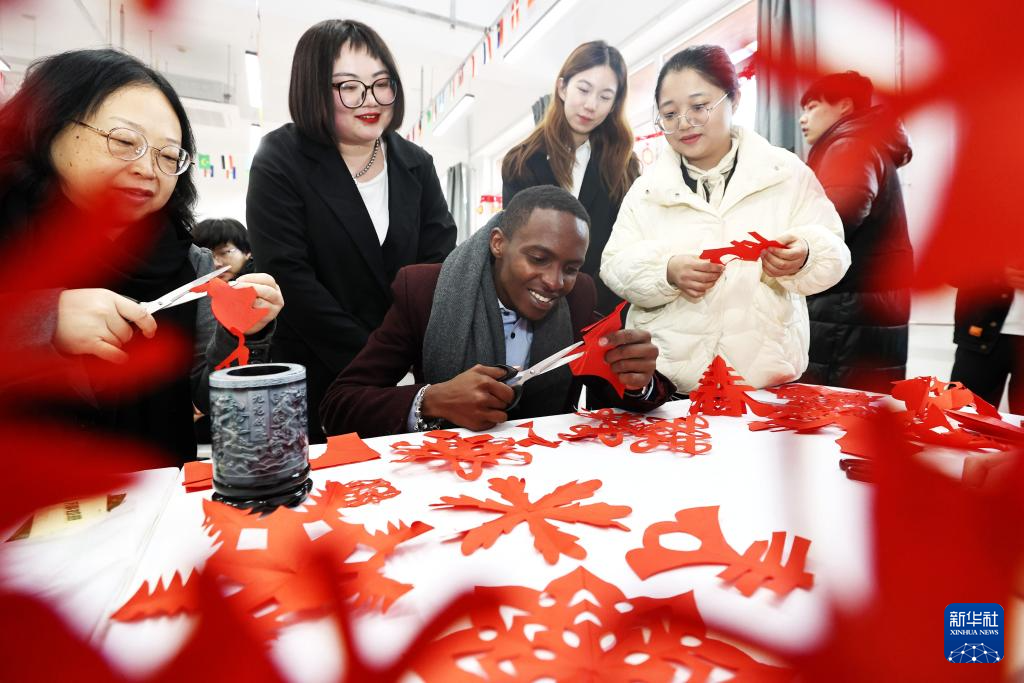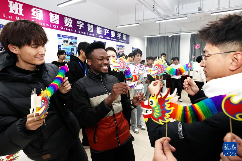 12月10日,肯尼亚青年代表在进行舞龙DIY体验活动。