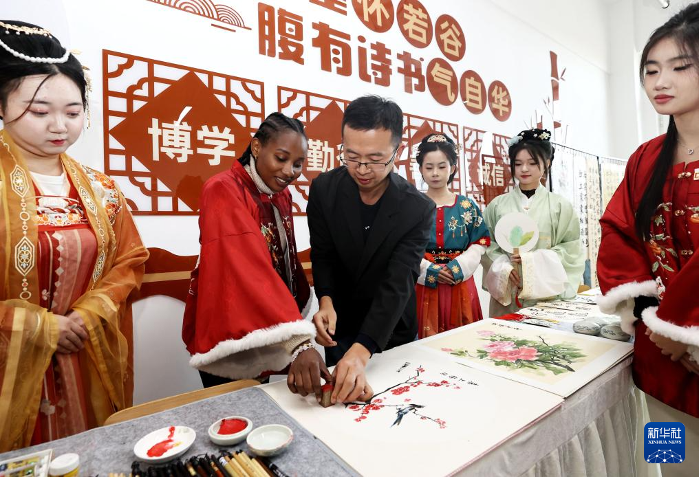 当日,“一带一路”中非青年可持续发展交流活动走进位于河北廊坊的燕京理工学院。来自肯尼亚的11名青年代表与该校师生开展交流,体验中国传统文化。
