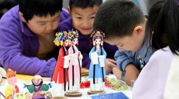 12月9日,在安徽省黄山市黟县宏村,何继星(左)在指导学员制作花灯。