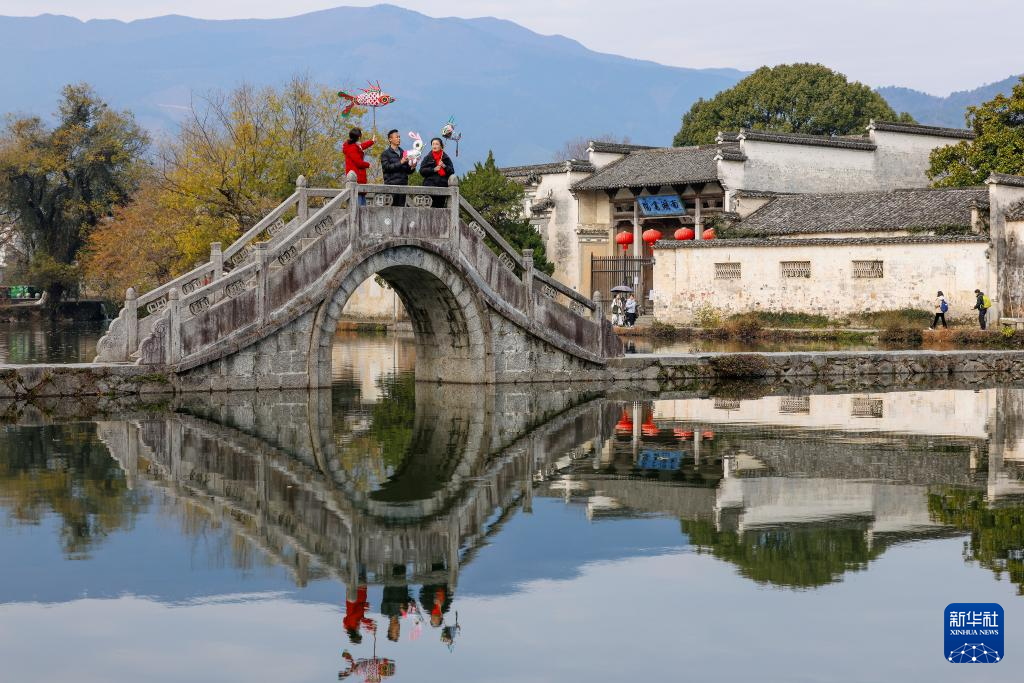 12月9日,在安徽省黄山市黟县宏村,何继星在查看花灯。