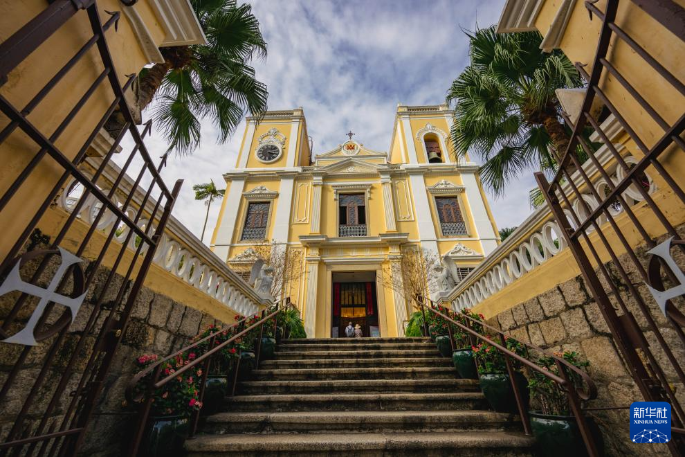 12月12日,游客在澳门圣老楞佐教堂游览。