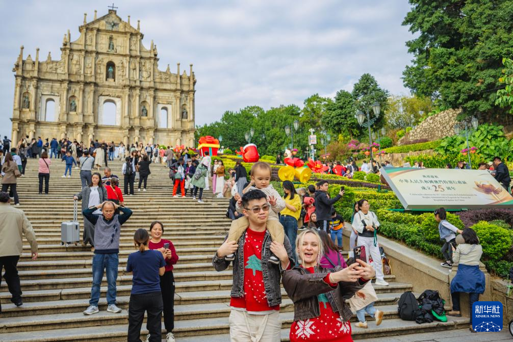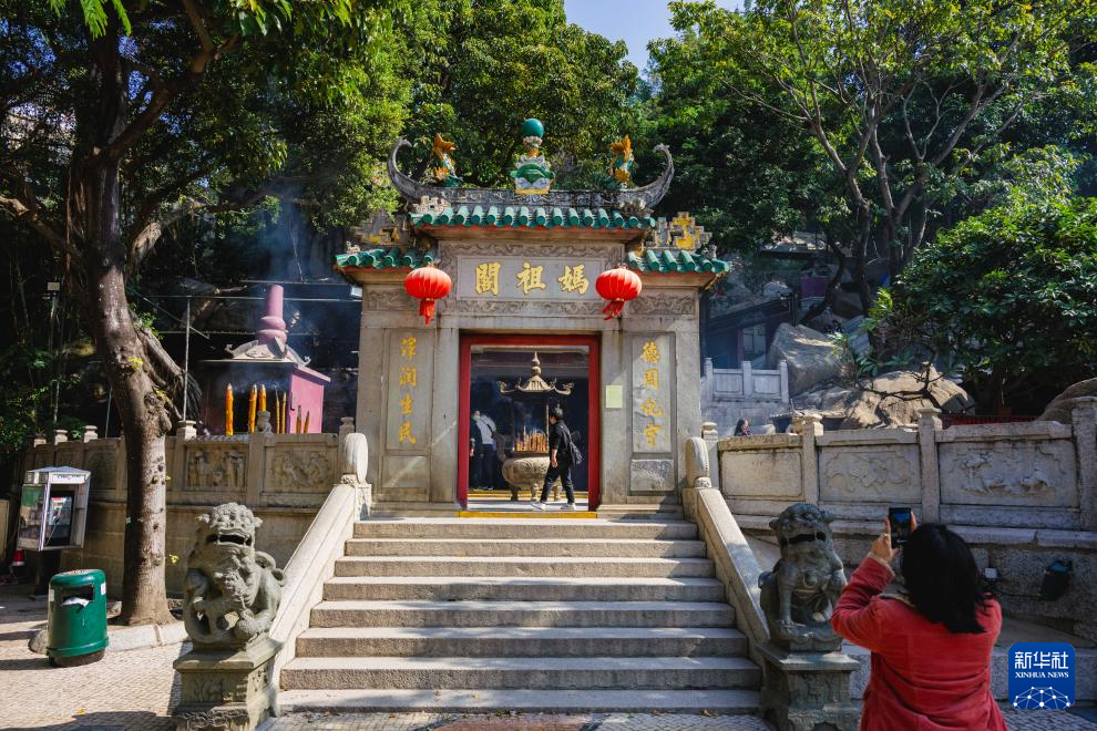 这是12月12日拍摄的澳门大三巴牌坊及其周边建筑。