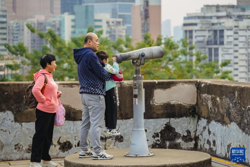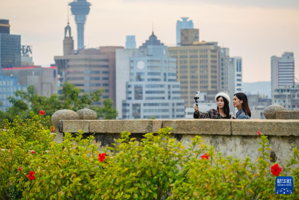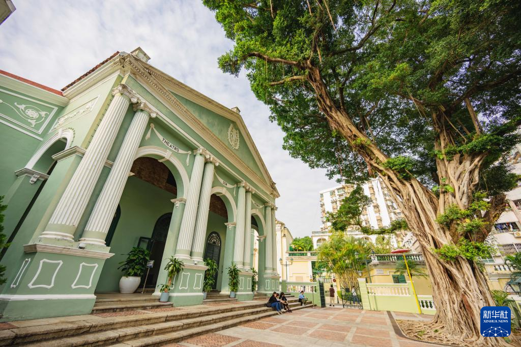12月12日,游客坐在澳门岗顶剧院的台阶上。