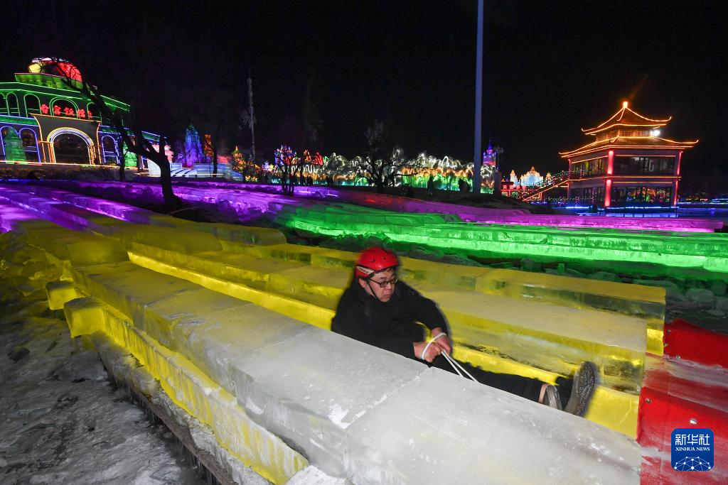 当晚,第六届长春冰雪新天地正式向中外游客亮相。长春冰雪新天地总经理任鹏介绍,今年156万平方米的园区用冰量、用雪量再创新高,经过数千名工人近20天的昼夜施工,如期与游客见面。园区新增冰雪演艺、冰雪旅拍、冰雪美食等综合服务场景,打造城市核心冰雪IP。
