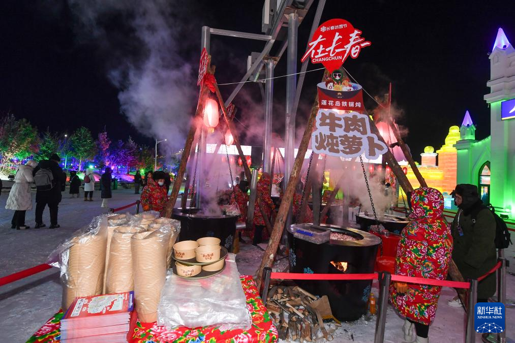 12月17日,工作人员在长春冰雪新天地制作特色美食。