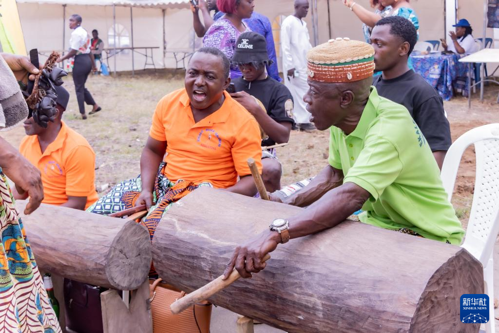 12月15日,人们在喀麦隆西南大区首府布埃亚举办的西南文化节上敲鼓。