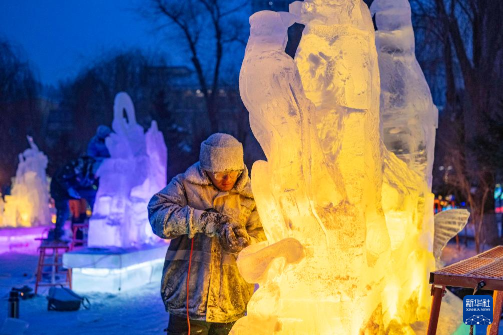 当日,在哈尔滨市兆麟公园举行的第44届全国专业冰雕比赛进入第2个比赛日,来自全国的冰雕师加紧创作冰雕作品。这些冰雕将作为公园冰雪景观的一部分,为市民游客献上一场冰雪艺术的视觉盛宴。