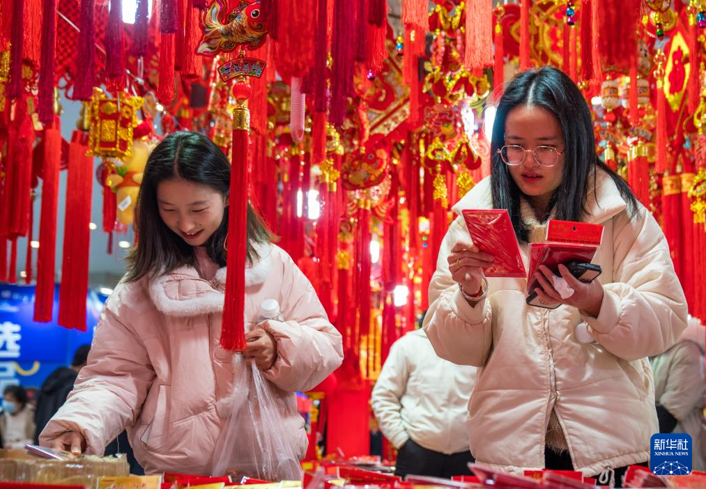 1月14日,顾客在昆明滇池国际会展中心挑选新春饰品。