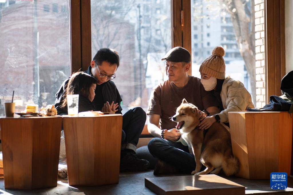 观众在辽宁省沈阳市红梅文创园内的一家咖啡馆休闲(2024年11月30日摄)。