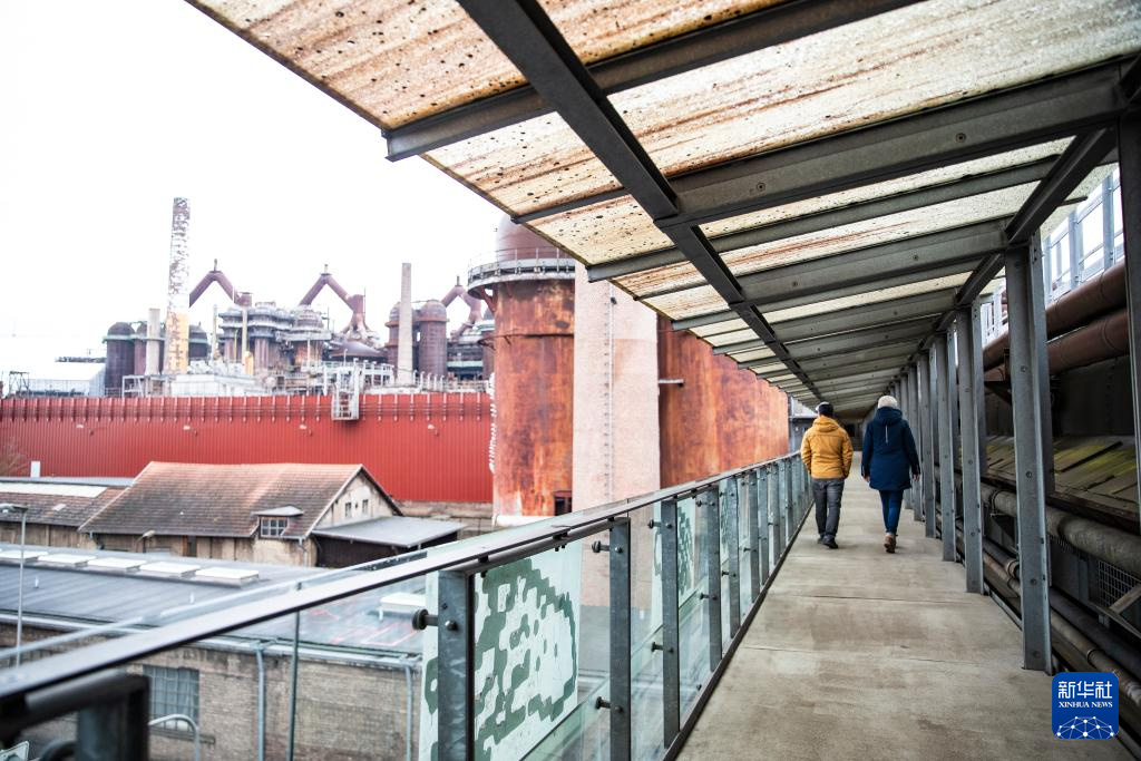 两名游客在德国萨尔州的弗尔克林根钢铁厂遗址内参观(2024年12月18日摄)。