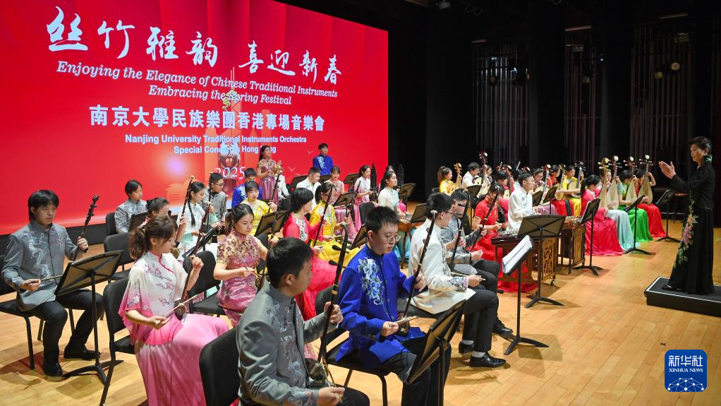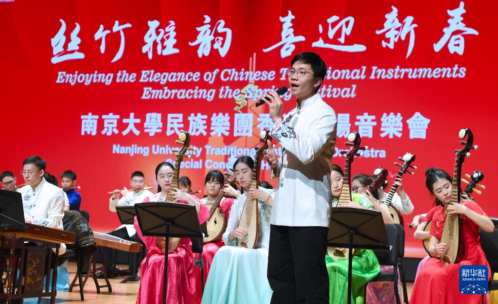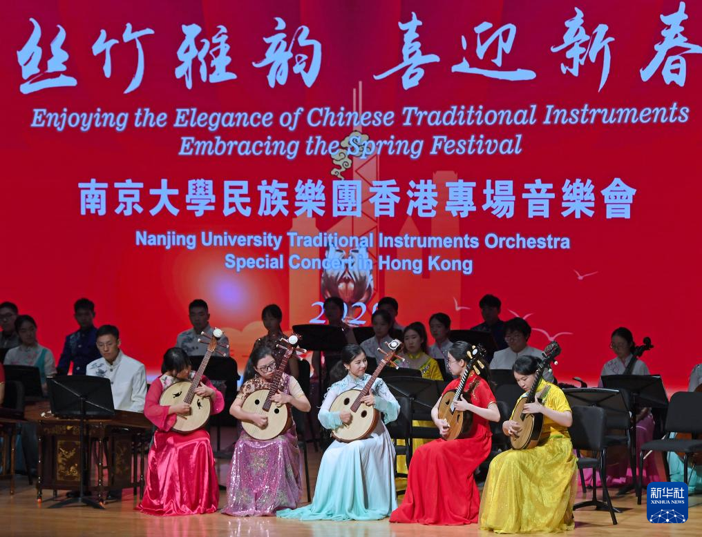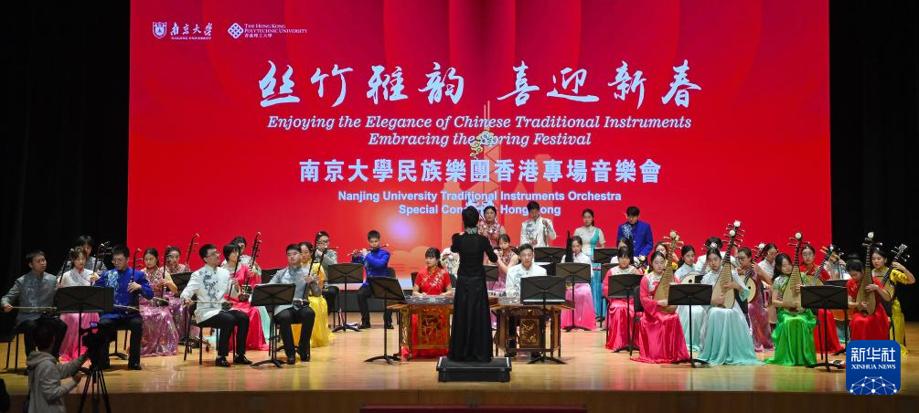 当日,南京大学民族乐团在香港理工大学举办“丝竹雅韵 喜迎新春”音乐会。南京大学香港校友代表、香港理工大学师生、香港中学生代表等约1000人出席音乐会。