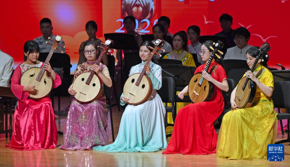 1月19日,南京大学民族乐团在音乐会上演奏民族管弦乐《金蛇狂舞》。