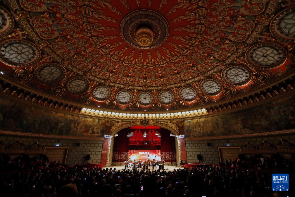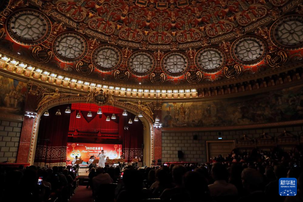 这是1月20日在罗马尼亚首都布加勒斯特的雅典娜音乐厅拍摄的2025“欢乐春节”中国旋律专场音乐会现场。