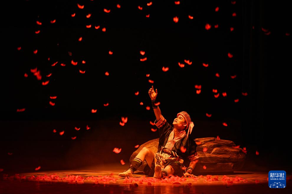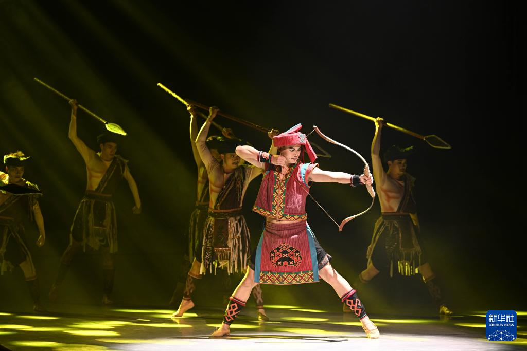 2月8日,演员在位于海口的海南省歌舞剧院表演大型原创民族舞剧《甘工鸟》。