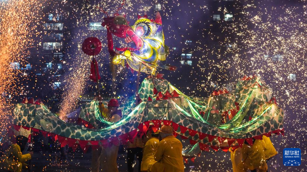 当日,贵州省黔东南苗族侗族自治州台江县举行2025年苗族“舞龙嘘花”非遗展演系列活动。100多支舞龙队齐聚台江县城,欢庆元宵节的到来。2021年,苗族“舞龙嘘花”习俗入选国家级非物质文化遗产名录。