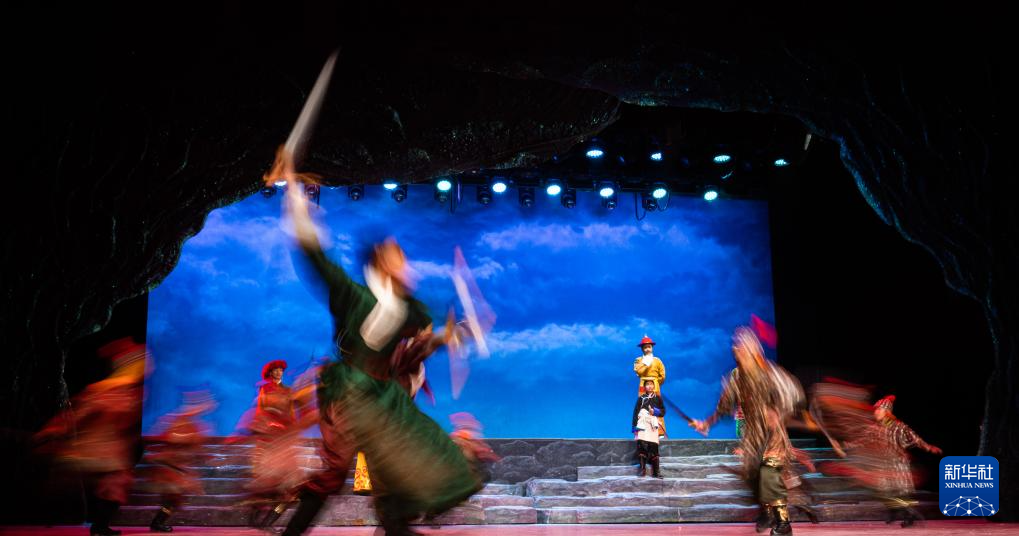 西藏首部少儿舞台剧藏戏《顿月顿珠》演出现场(2月11日摄)。