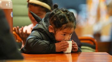 2月22日,小朋友在山东省聊城市的一家儿童影像馆拍摄哪吒主题写真。