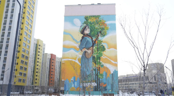 2月15日,市民从石家庄市裕华区一处哪吒主题墙绘前路过。