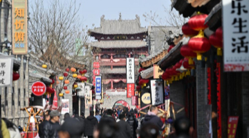 2月20日,山东省淄博市周村区沈家村村民沈靖宇从其创作的哪吒主题墙绘前走过。