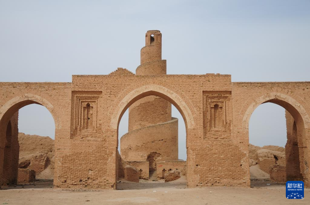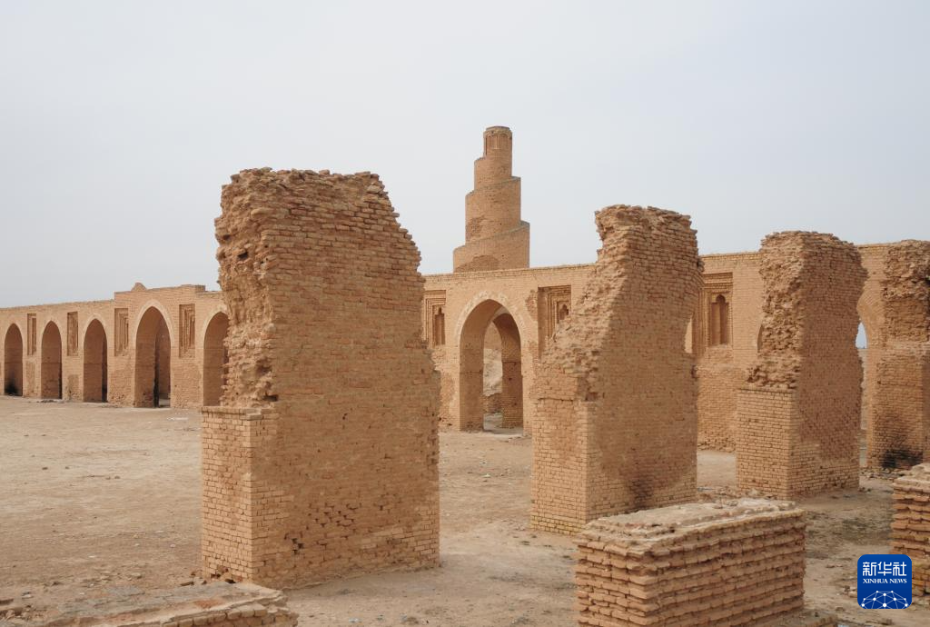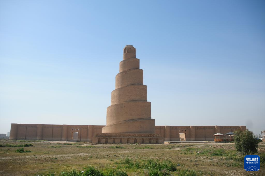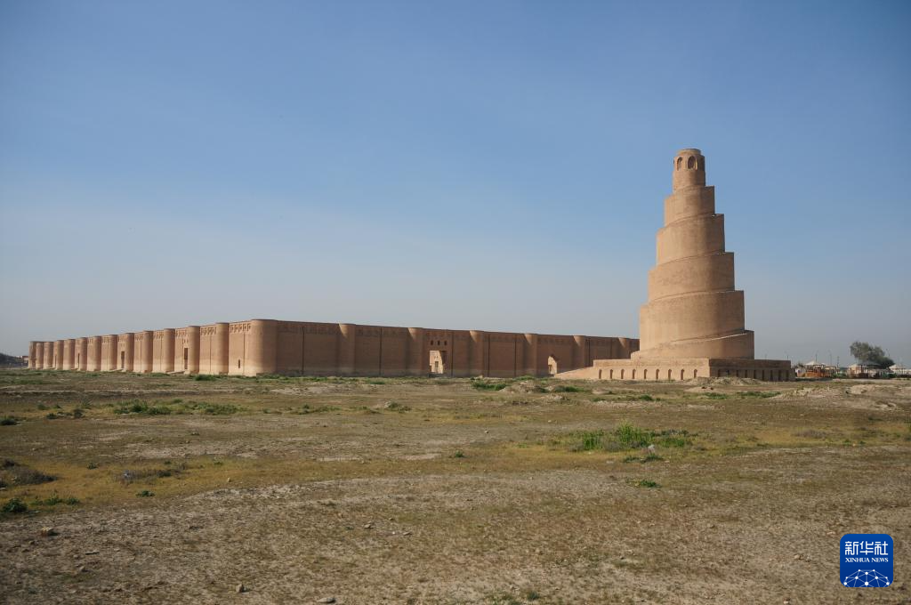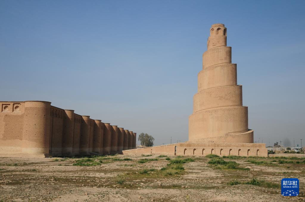 这是3月3日在伊拉克萨拉赫丁省拍摄的萨迈拉大清真寺和螺旋宣礼塔。