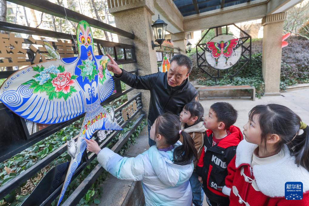 3月19日,中国风筝协会理事金月强给孩子们介绍传统风筝的结构和特点。