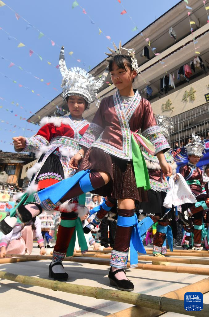 当日,广西柳州市融水苗族自治县杆洞乡中心小学举行石榴籽连籽·共庆“三月三”乡村少年宫民族风情文化展演活动,各族少年通过芦笙踩堂舞、山歌对唱、刺绣等丰富多彩的民俗文化活动,喜迎“三月三”传统节日。