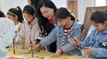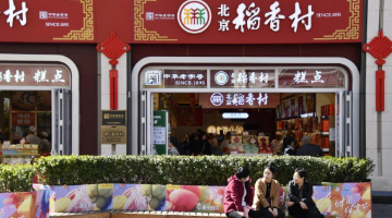 3月25日,一名来自山东的游客(前左)成为第100万件凤冠冰箱贴的购买者。