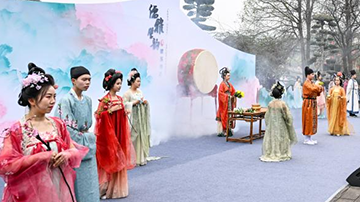 3月25日,观众在北京中国国家博物馆选购凤冠项链。