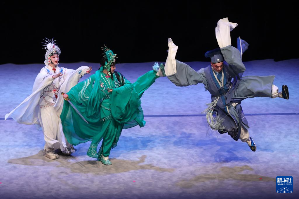 4月5日,演员在奥地利首都维也纳表演婺剧《白蛇传》。