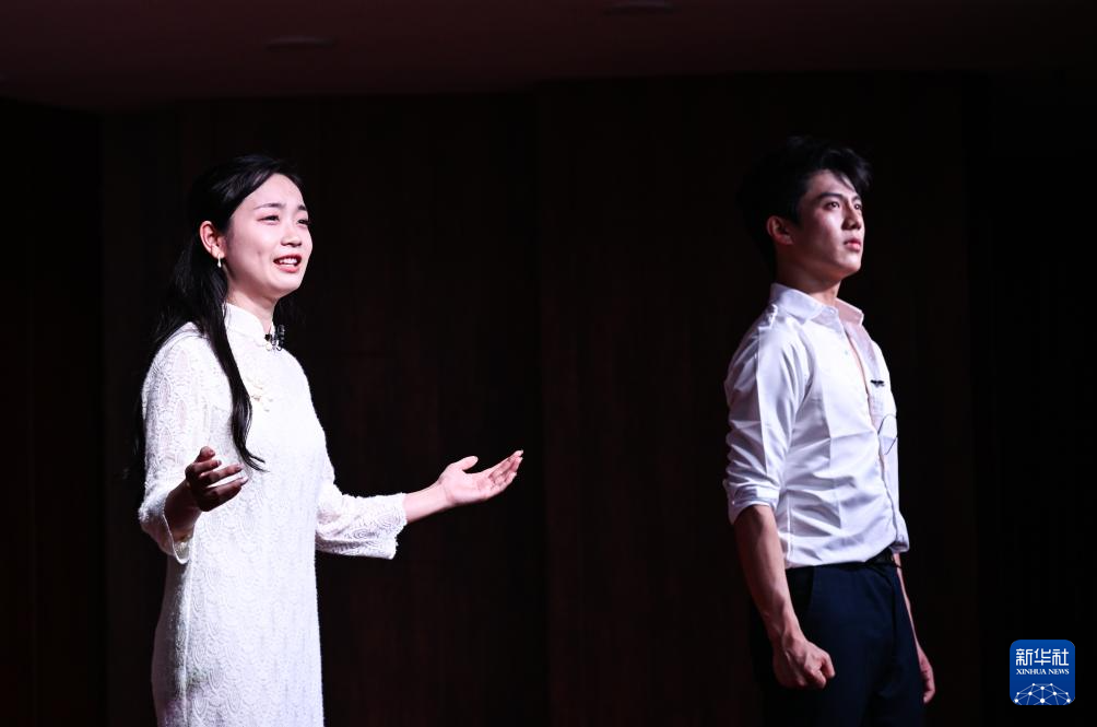 4月16日,在重庆市沙坪坝区文化馆,演员表演话剧《青山见》。