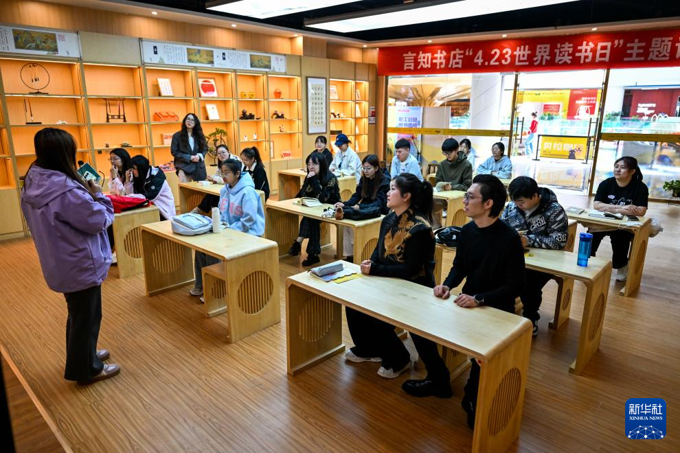 4月21日,在乌兰察布市集宁区言知书店,市民在自习。