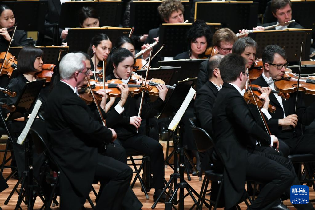 5月13日,演奏者在北京大学2025五四交响音乐会现场演奏《D大调第9号交响曲》。