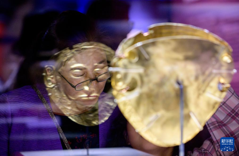 5月18日,游客在山东省青州博物馆参观展出的文物。
