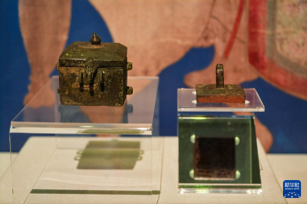 这是浙江绍兴新昌博物馆的“唐诗之路”展览展出的文物(6月18日摄)。