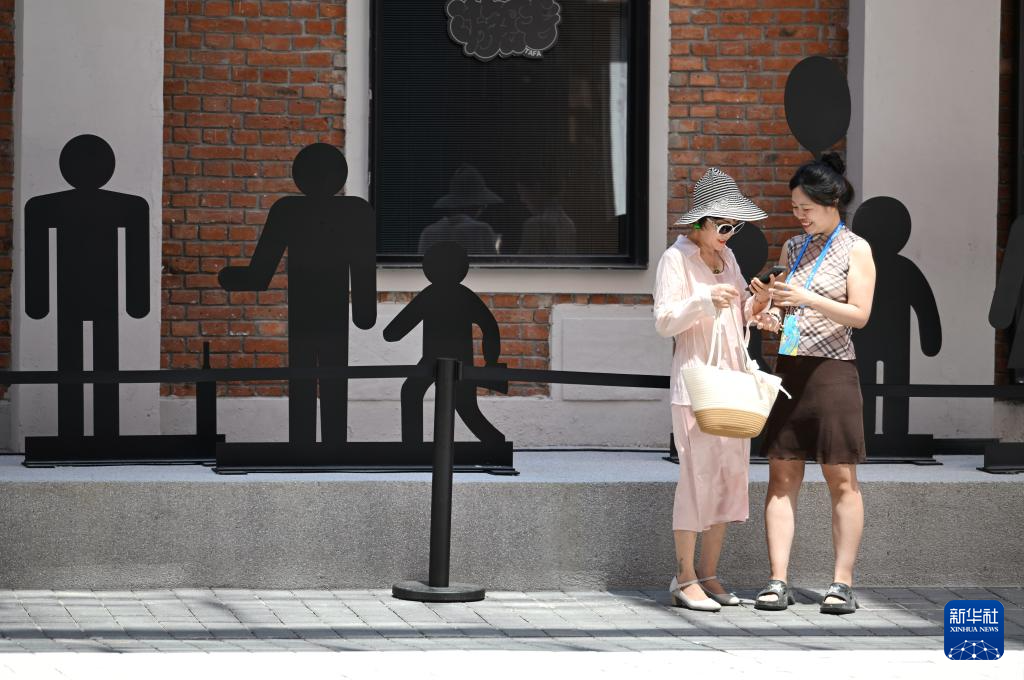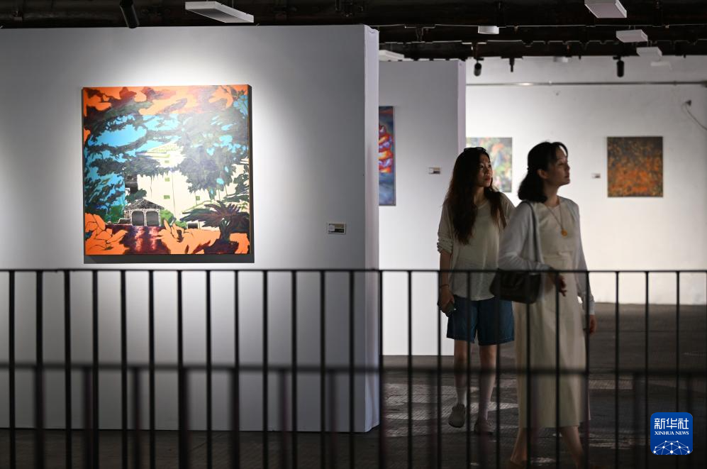 7月13日,市民在天美艺术街区参观艺术作品展。