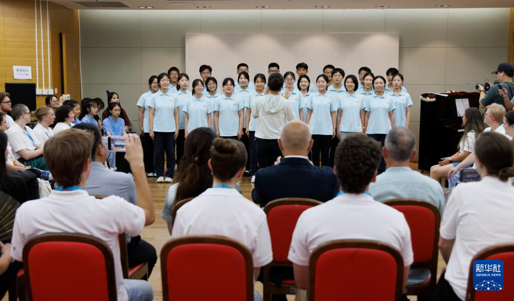7月14日,在中国交响乐团,河北省正定中学合唱团在演唱。