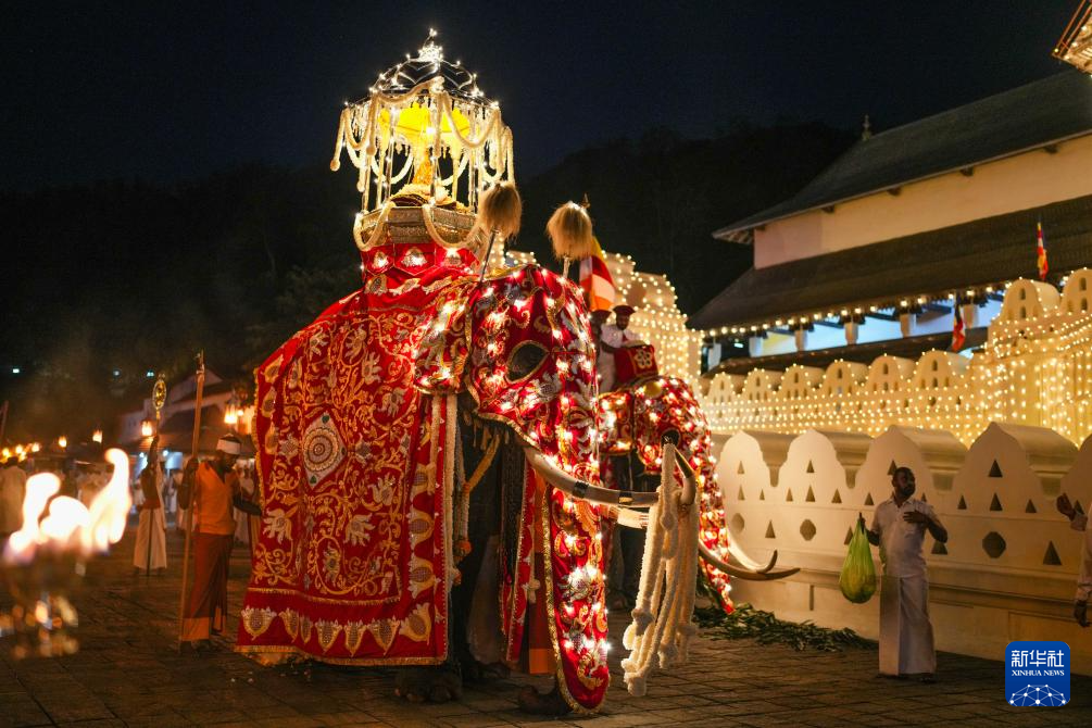 这是8月4日在斯里兰卡中部城市康提拍摄的佛牙节游行活动现场。