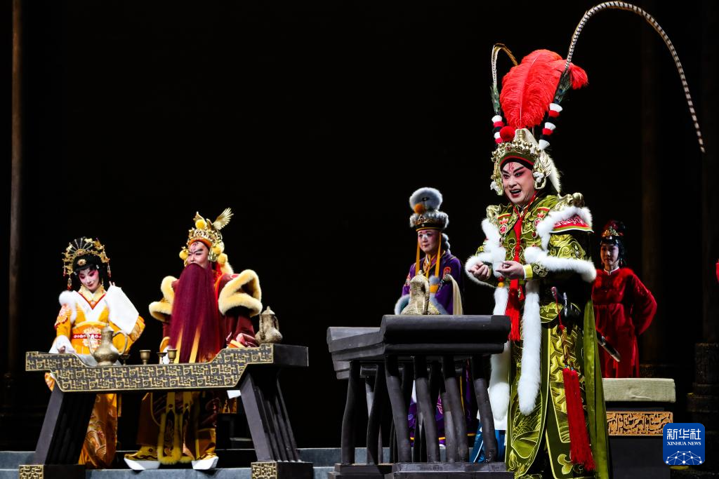 9月5日晚,演员在兰州音乐厅表演新编历史京剧《凉州辞》。