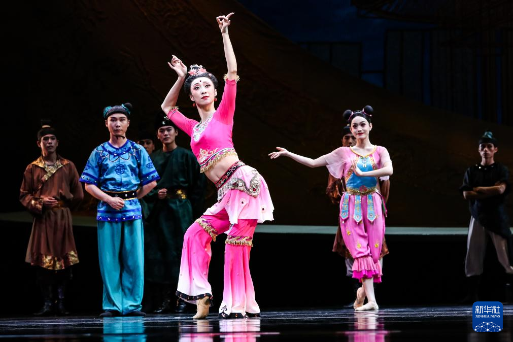 9月20日晚,演员在敦煌大剧院表演新版《丝路花雨》。