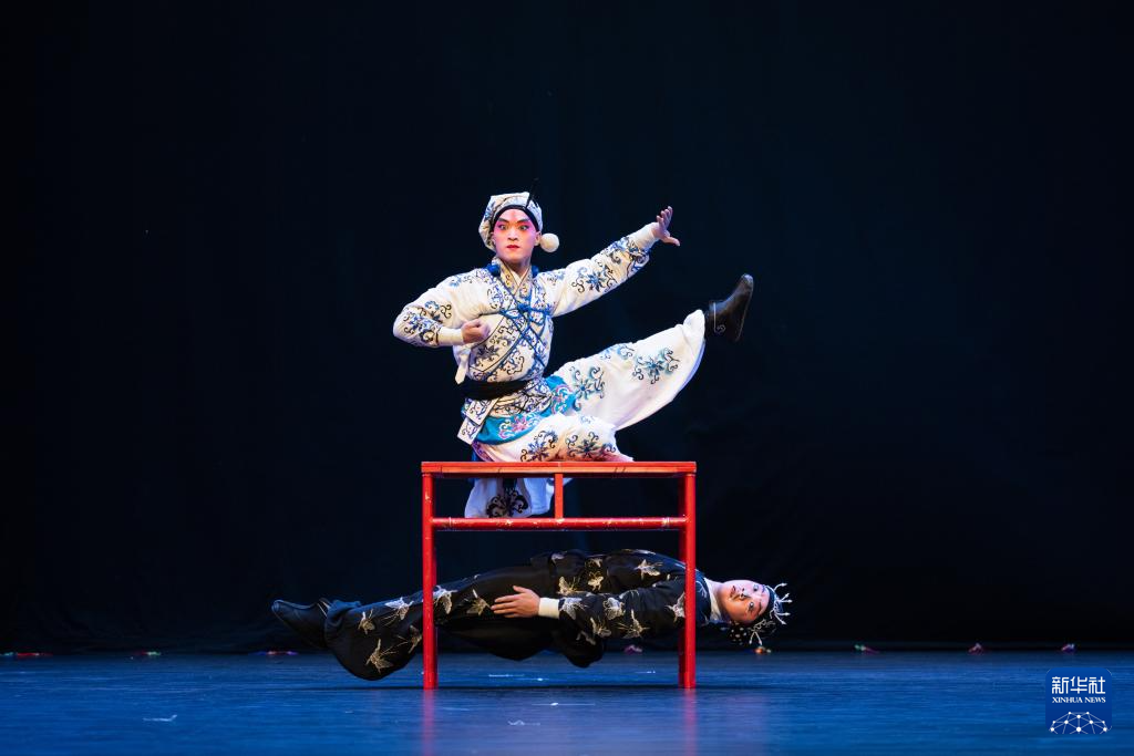9月25日,在刚果(金)首都金沙萨,演员表演婺剧《三岔口》。