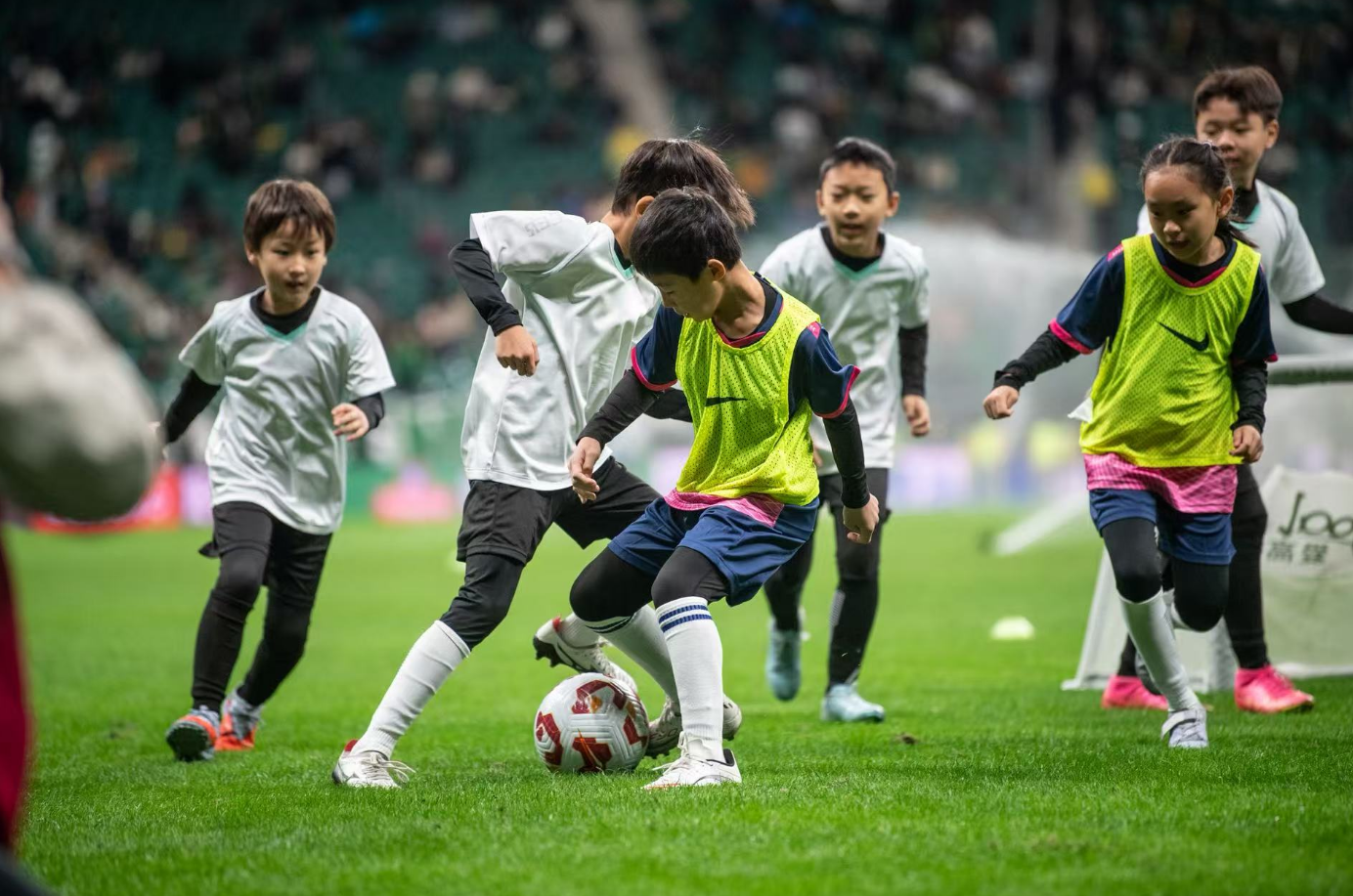 工体搭建梦想舞台,校园足球迈入职业赛场。当晚,来自东城区西中街小学、新鲜胡同小学、西城区黄城根小学、朝阳区第二实验小学8个自然班级足球队的40名少年,成为工人体育场数万观众瞩目的焦点。他们的登场,标志着北京市“班超”联赛的优秀成果首次在职业足球的舞台上华丽亮相。这一刻,孩子们不仅是赛场的主角,更是连接校园足球与职业足球的文化使者,标志着校园足球从普及走向提质、从校内走向更广阔天地的关键一步。