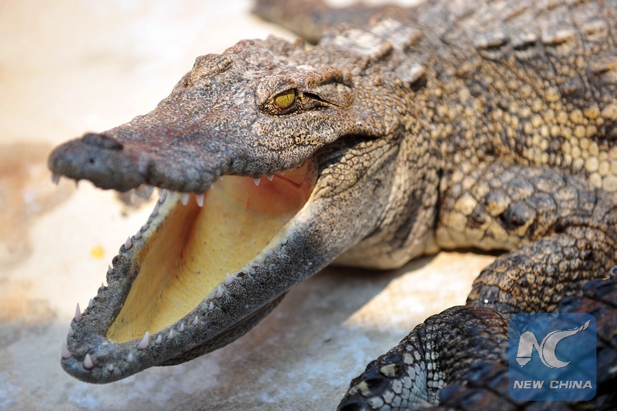 File photo shows a crocodile in rearing pond at a farm in south of Bangkok, Thailand, March 7, 2013. (Xinhua/Rachen Sageamsak)