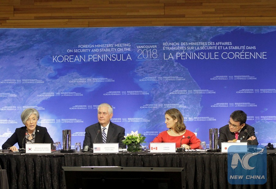 VANCOUVER, Jan. 16 (Xinhua) -- Foreign ministers from 20 nations on Tuesday said they would not accept a nuclear-armed Democratic People's Republic of Korea (DPRK) and maintain maximum pressure against Pyongyang at a meeting in Vancouver, which was criticized by China and Russia as illegal and counterproductive.