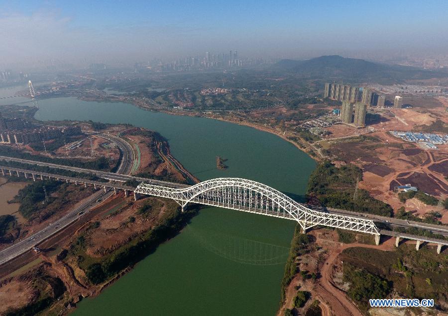 Photo taken on Dec.21, 2017 shows a bridge in south China's Guangxi Zhuang Autonomous Region. By making full use of its geographical location and the potential of coastlines and border areas, Guangxi capitalized on its advantages and played a bigger role in the Belt and Road Initiative. Through ports and the Beibu Gulf Economic Zone, the trade cooperation between Guangxi and ASEAN countries gained great prospects. (Xinhua/Lu Boan)