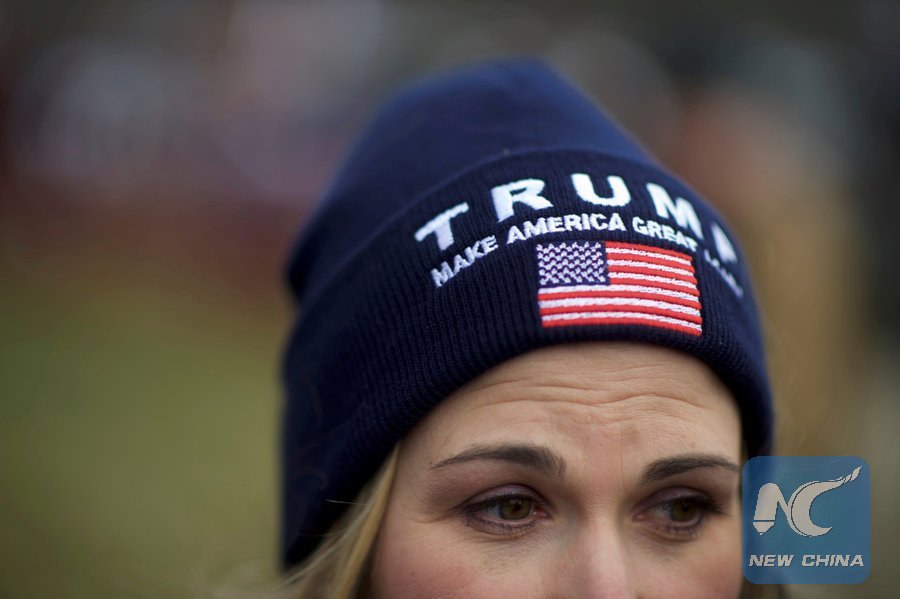 A supporter of President Donald Trump wears a campaign hat during a "People 4 Trump" rally at Neshaminy State Park in Bensalem, Pennsylvania, U.S. March 4, 2017. (Xinhua/REUTERS)