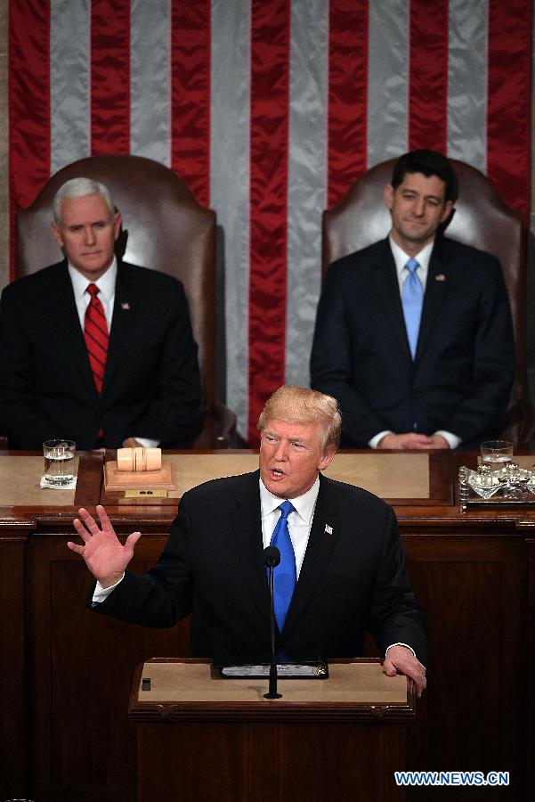 WASHINGTON, Jan. 31 (Xinhua) -- In his first-ever State of the Union (SOTU) address, U.S. President Donald Trump called for unity in Washington in a bid to get both parties on the same page and pass an agenda he said would bring tremendous benefit to Americans.